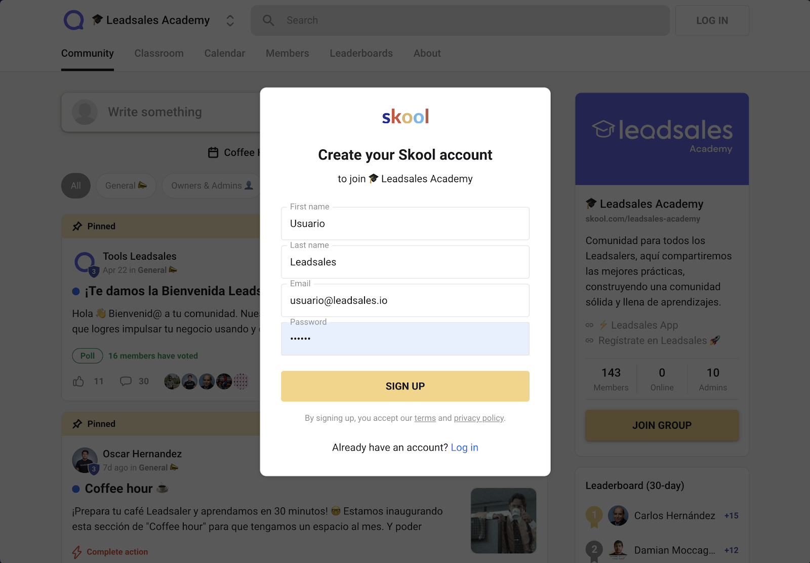 Si ya tienes tu cuenta de Leadsales Academy, puedes participar dentro de la comunidad, para conectar con otros Leadsalers, compartir consejos y aprender de las mejores prácticas.