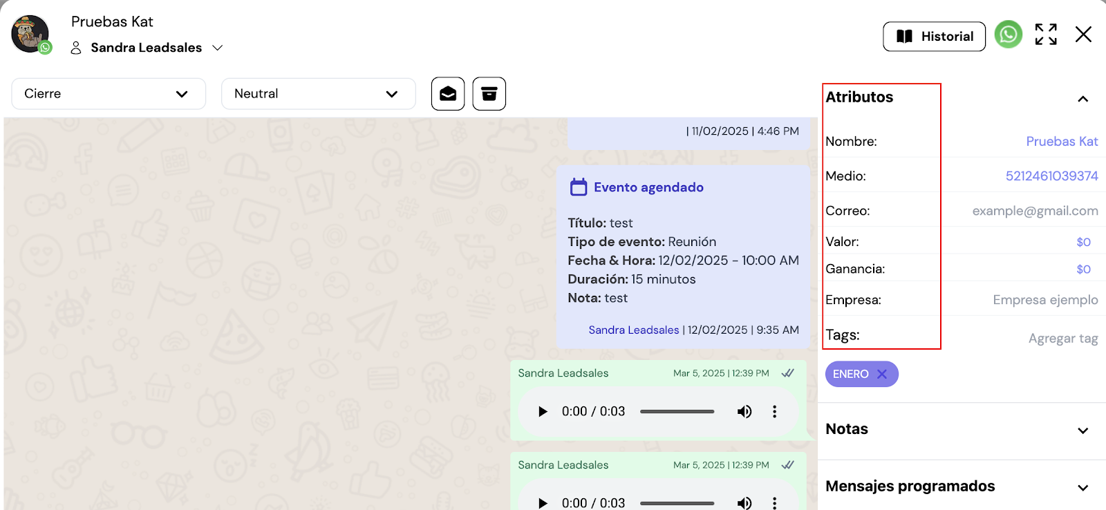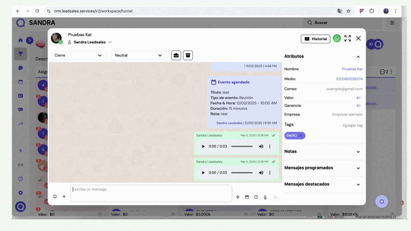 - Haz clic sobre el lead dentro del embudo, directorio o chat.