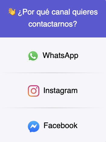 La manera en la que podemos aprovechar esta herramienta es configurando las redes sociales que tengas vinculadas a Leadsales y colocándolo en tu página Web. De esta manera si una persona está interesada en tus productos o servicios, será más sencillo que te contacte por medio de este botón, seleccionando el canal de comunicación de su preferencia (WhatsApp, Instagram o Messenger). En la siguiente imagen podrás ver como se estaría reflejando este widget: