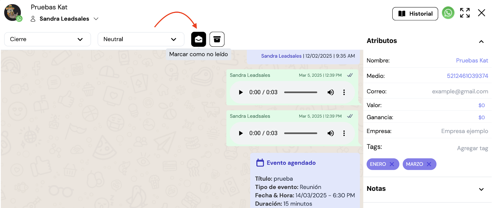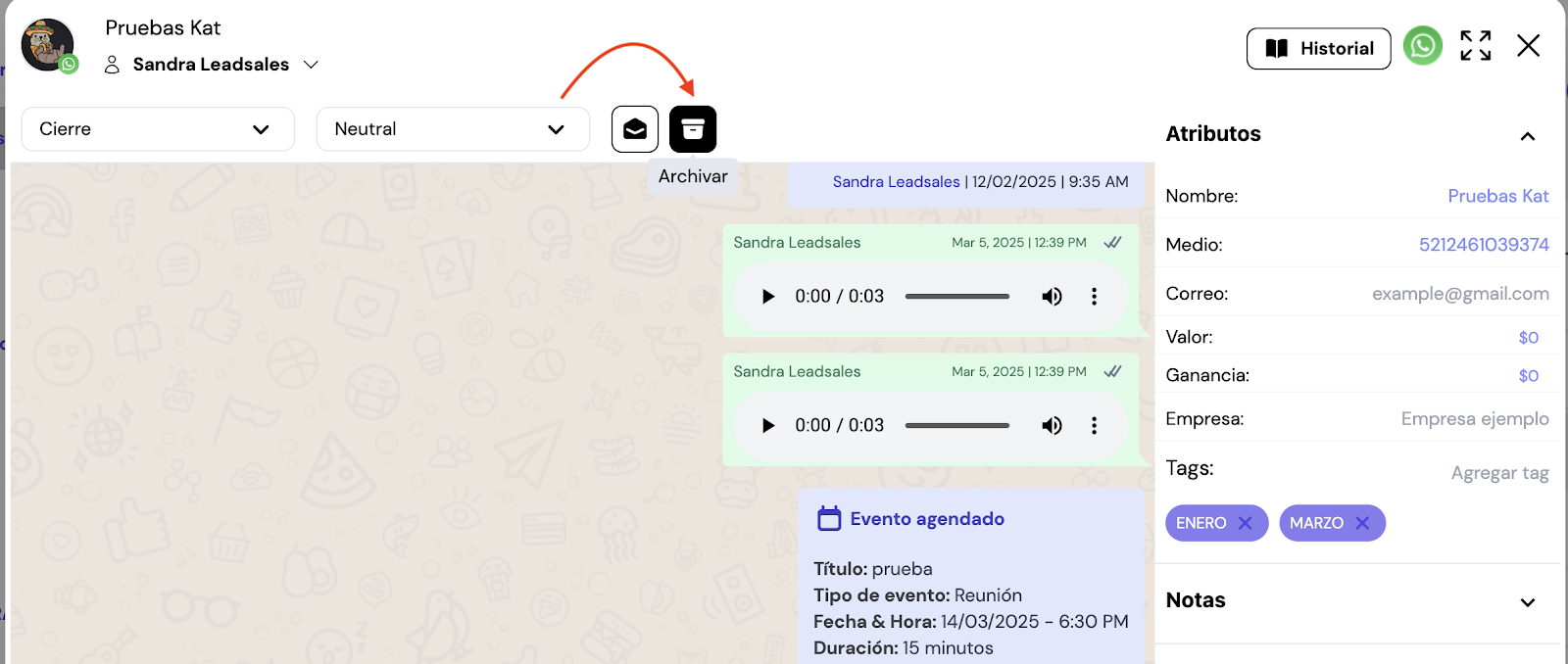 📌Si el contacto archivado vuelve a escribir, la conversación también regresará automáticamente al embudo y etapa donde la dejaste.