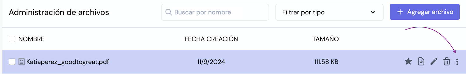 En los 3 puntitos que te indicamos en la siguiente imagen, podrás dar clic para poder utilizas las siguientes acciones: