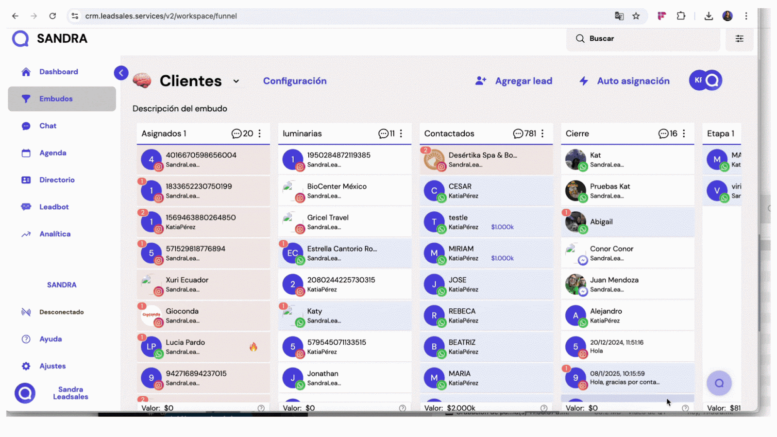- Transferir leads entre embudos: Si manejas múltiples embudos, puedes mover leads de uno a otro según sea necesario.