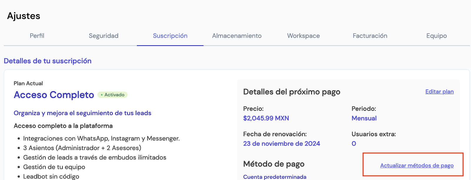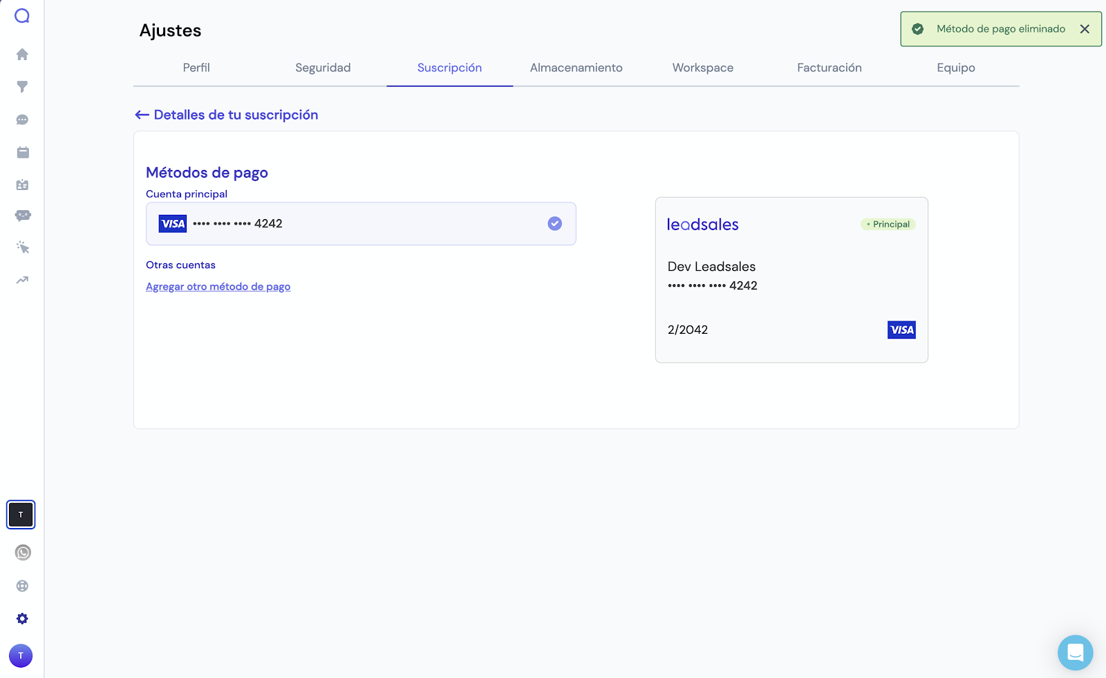 📌 Importante: Esta acción solo puede ser realizada por el Owner desde su cuenta de Leadsales.