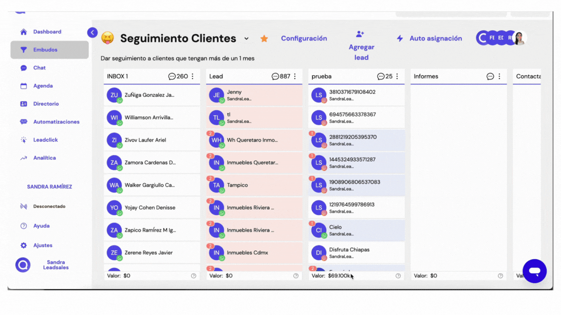 Si uno de tus asesores o usuarios con rol de seller no visualiza el número de tus leads, revisa la configuración de tu embudo.